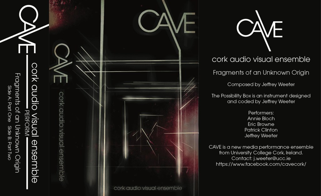 In early 2018, I was asked to be a featured artist at the SonADA Sound Art festival in Aberdeen, Scotland. I brought a small version of CAVE with me to showcase the Possibility Box and a newly composed piece Fragment of an Unknown Origin. This work used fragments of music found on broken stones dating from Ancient Greece. While their original purpose was lost, CAVE reanimated the broken melodies through improvisation and instruments that didn’t always respond the way a musician would be used to. I programmed some of the instruments with Euclidian sequencers that required a number to be inputed into the sequencer by the instrumentalist via the onboard buttons. The resulting rhythm would often be unpredictable and the instrumentalist would really be working with timbre and densities of sound. The piece itself was written as a lead sheet for group improvisation.